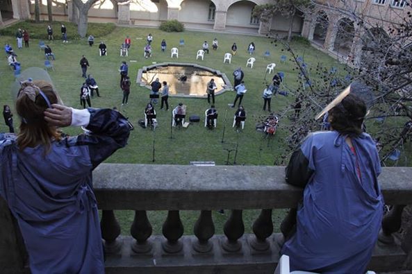 Se interpretaron canciones clásicas y de la música popular argentina, con la idea de que quienes pasan sus días allí disfruten de un buen momento.Sobre el final se dedicó un sostenido aplauso a todos los médicos y enfermeros que día a día cuidan a los vecinos de San Miguel.