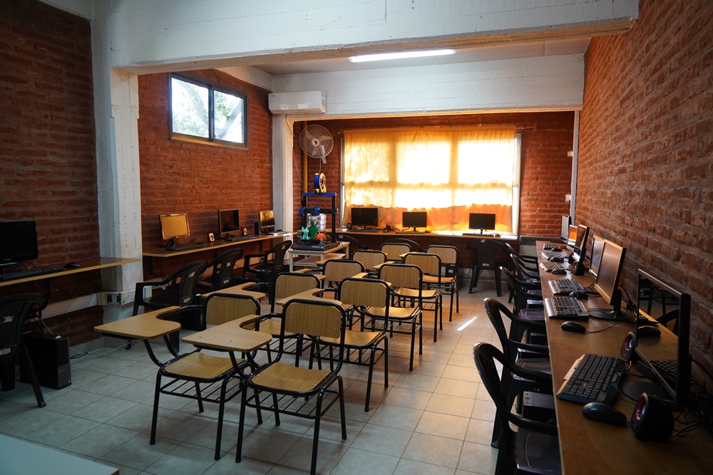 La sala inaugurada cuenta con más de 15 computadoras totalmente equipadas y una impresora 3D para que los alumnos y alumnas que se inscriban en los cursos de informática puedan aprender a utilizarlas.
