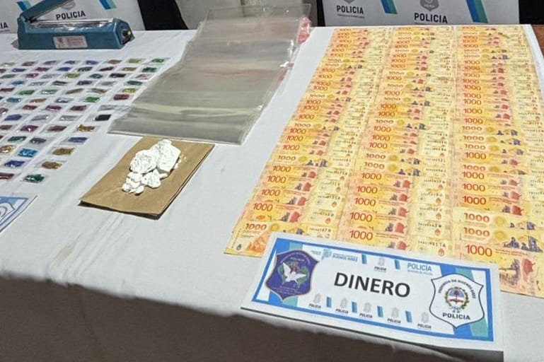 Durante los operativos se secuestraron 594 gramos de cocaína distribuidos en 197 envoltorios de papel glasé de varios colores y un envoltorio de nylon con trozos compactos. Además, se incautaron $138.000 en efectivo, un teléfono celular, una termoselladora y varias bolsas de nylon transparentes, elementos comúnmente utilizados para el fraccionamiento de estupefacientes.